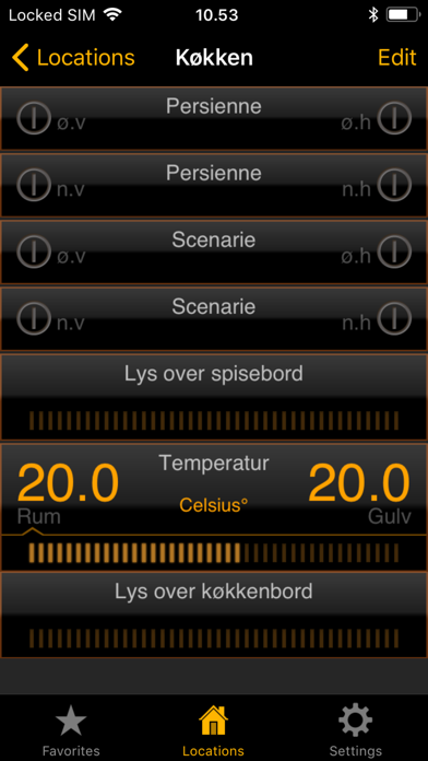 Once IHCRemote is connected to your IHC Controller, you have access to all your relevant IHC installation inputs. Subsequently you may assign input buttons suitable icons and compose your own list of favorite buttons.