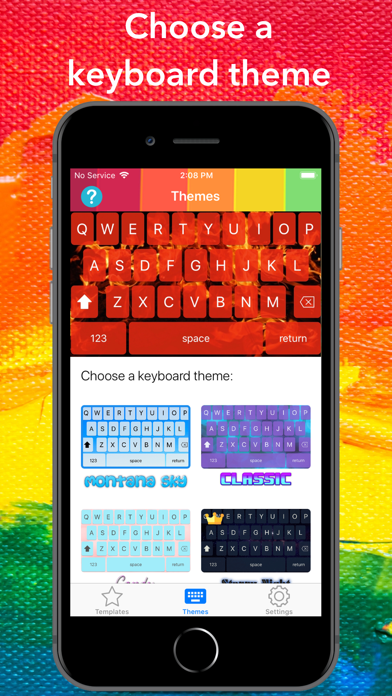Enjoy all of our other features too! We expanded the normal keyboard to include extra characters like bullet points, symbols and other useful characters. Pick your favorite color scheme for the keyboard. Change the font of your text to bubbled, cursive, underlined, smileys and much more!