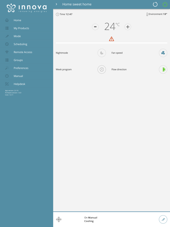 Avec “InnovApp 2.0” vous pouvez contrôler toutes les fonctions du Soloclim avec votre smartphone ou tablette grâce à l’interface WIFI intégrée.