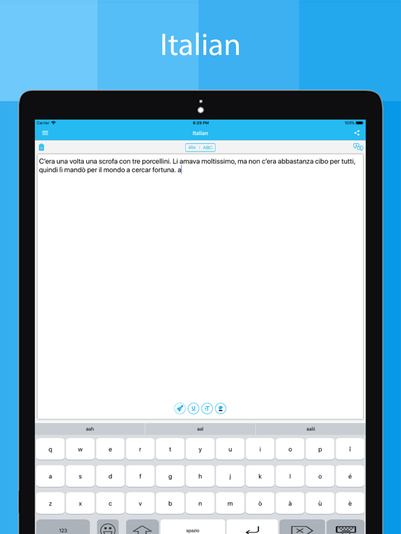 Italian keyboard app will allow you to write message, story, facebook posts, blogs, Emails in Italian language.