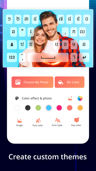 Khmer keyboard app will allows you to type message, Story, E-mails etc. in Khmer language. You will find superb eye catching themes from Khmer Keyboard. You can set your own photo in keyboard and make it cute. Khmer Keyboard app will also provide custom settings. Of course you want such lovely and cute Emoji, so it is also there.