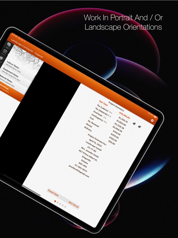 Full dark mode support with a custom contractor orange theme. Smooth animations and intuitive gestures. Floating action buttons reduce taps needed. Optimized for all iPhone and iPad sizes. Clean, modern design focused on efficiency.