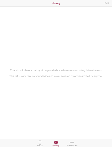 The app keeps a PRIVATE editable history of zoomed URLs for your convenience, no data or tracking of any kind is ever sent outside your own devices, ever.