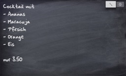 Use this Promotion Board in your company, restaurant or shop window. You can display any text in three different sizes. The font chosen was a chalk-like font.