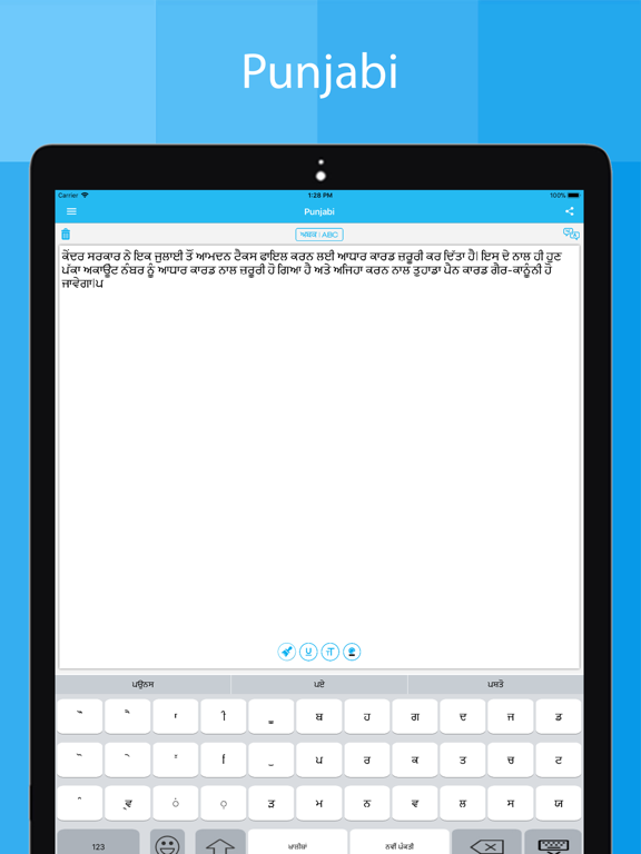 Punjabi keyboard app will allow you to write message, story, facebook posts, blogs, Emails in Punjabi language.
