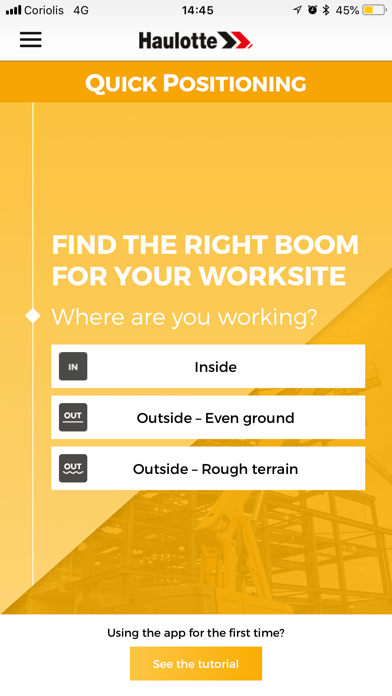 L’application Quick Positioning vous aide à identifier la nacelle élévatrice la plus adaptée à la zone de travail que vous souhaitez atteindre.