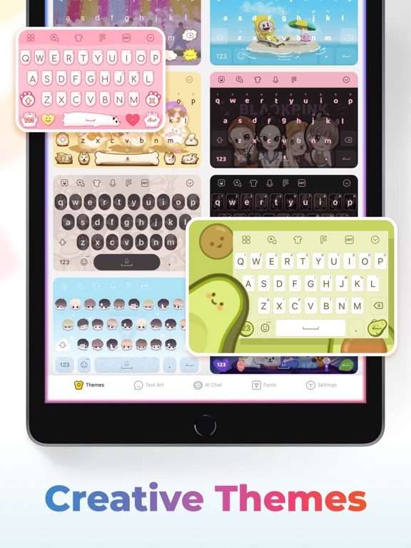 Facemoji Emoji Keyboard is a Free AI-Powered Custom Keyboard with Cool Fonts. With over 6000 emojis, WhatsApp stickers, genmoji, kaomoji, text art, GIFs, cool fonts, symbols, TikTok emojis, and stylish themes, this emoji keyboard spices up your chats and posts on WhatsApp, TikTok, Instagram, Messenger, Facebook, Snapchat, SMS, and any other app you're using.
