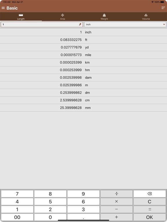 - Basic : length (distance), area, weight (mass), volume (capacity)