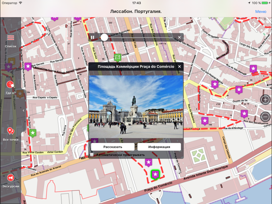 ● ЭКСКУРСИИ ПО ЛИССАБОНУ. Воспользуйтесь предварительно составленными обзорными экскурсионными маршрутами, включив автоматический режим экскурсии. Подробнее о маршрутах на нашем сайте 1000guides.com