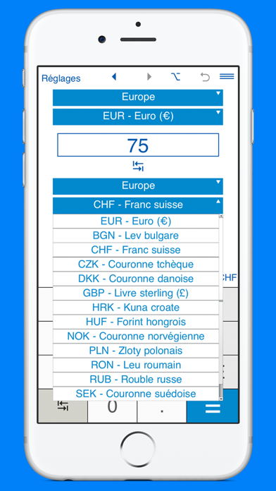Convertisseur de devises, qui vous permet de convertir 32 monnaies.