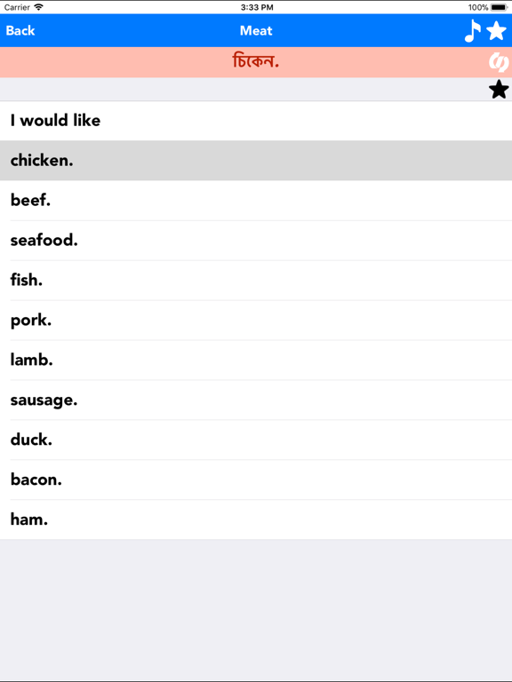 More than 2000 phrases are available for common conversation situations in Bengali and English and are divided into categories like Tickets, Hotel, Dining, Hospital, Transportation, Sightseeing, Conversation, Airport, and etc. for easy use.