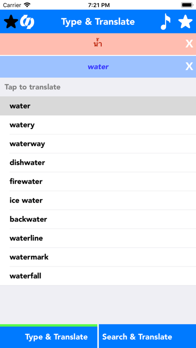 Look up default English to Thai or Thai to English sentences and phrases or manually type your own English to Thai or Thai to English words and sentences with a few clicks.