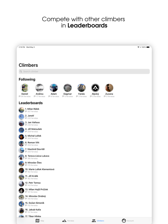 Ferrata Guide - The biggest Via Ferrata database containing ferratas from Austria, Italy, France and more than 20 other countries. Everything is shown on a map with advanced filtering. Detailed description, topos, ratings and photos from other climbers. You can create a profile where you can mark ferratas that you have climbed or save ferratas that you want to climb in the future. You can communicate with other climbers and many more cool features!