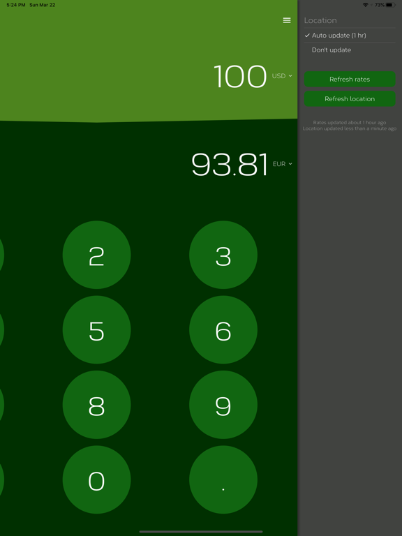 Location aware currency converter automatically detects the country you're in and picks the appropriate currency. Works offline without using data for when you are traveling without internet.