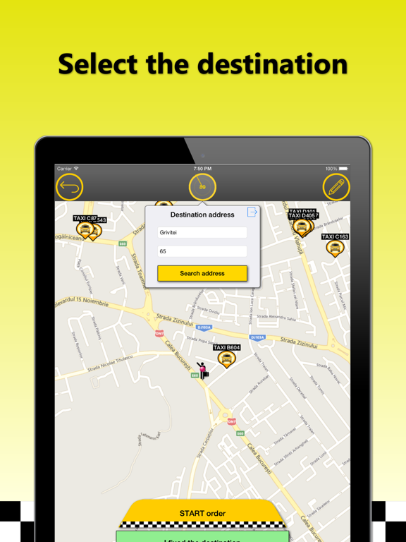 - If you do not wish to enter the destination address, press the "I want a TAXI here!" button.