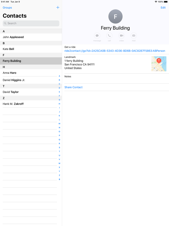 Get a ride directly to your Contacts.