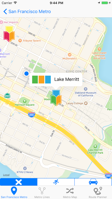 Это программа предназначена для тех, кто в Сан - Франциско хочет пользоваться Метро в качестве транспортного средства. С помощью программы легко найти ближайшую станцию Метро. Программа определит расстояние до ближайших станций Метро по отношению к точке нахождения и покажет их вам на карте и в виде списка.