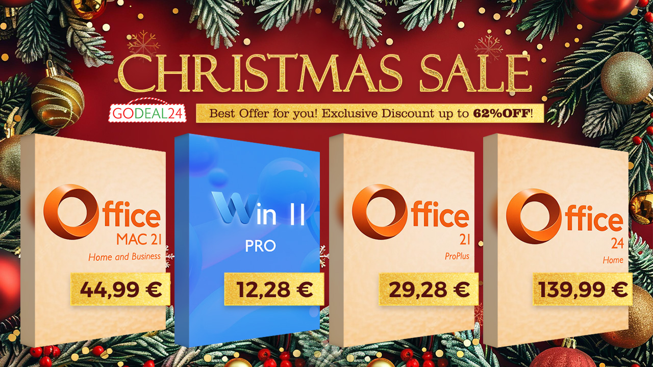 Offres de Noël sur Godeal24 : Office pour Mac à vie dès 39,29 € et Windows 11 Pro à 12,25 €