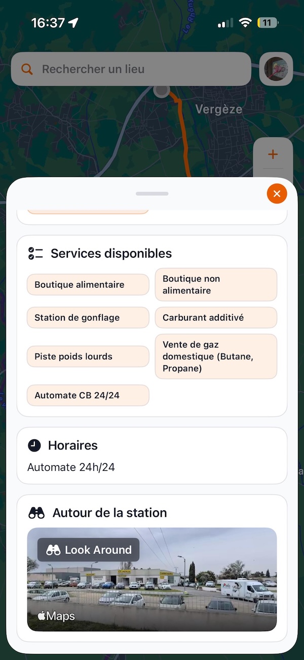 NuttyGo ne se contente pas d’afficher une carte. L’app intègre aussi plusieurs outils pour affiner les recherches, avec des filtres par type de carburant, une navigation par région et département, ainsi que des fiches détaillées regroupant les informations utiles comme l’adresse, les horaires et les services disponibles sur place.