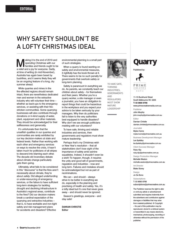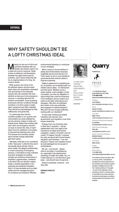 Quarry is the official publication of the Institute of Quarrying Australia. It is also Australia’s only publication dedicated to the promotion of the discipline and science of the quarrying, extractive and construction materials industries. The magazine was first launched in 1984.
