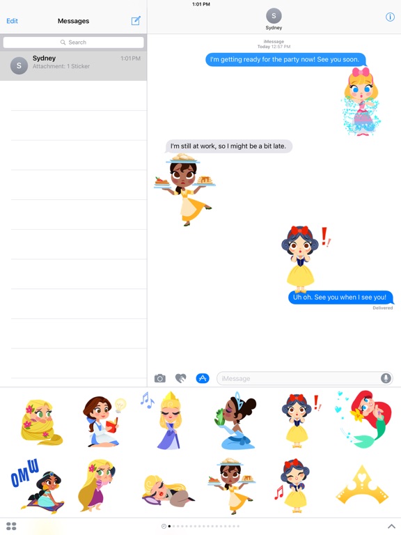 Add big dreams to your iMessages with this Princess sticker pack that includes iconic characters like Ariel, Rapunzel, and Mulan.