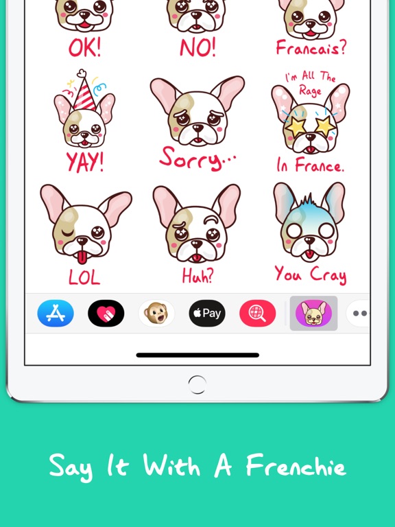 Super cute and funny french bulldog emotion stickers let you show how you're really feeling with some french bulldog flair. Parlez-vous français? Instead of just saying Hi, say Hi with a french bulldog!