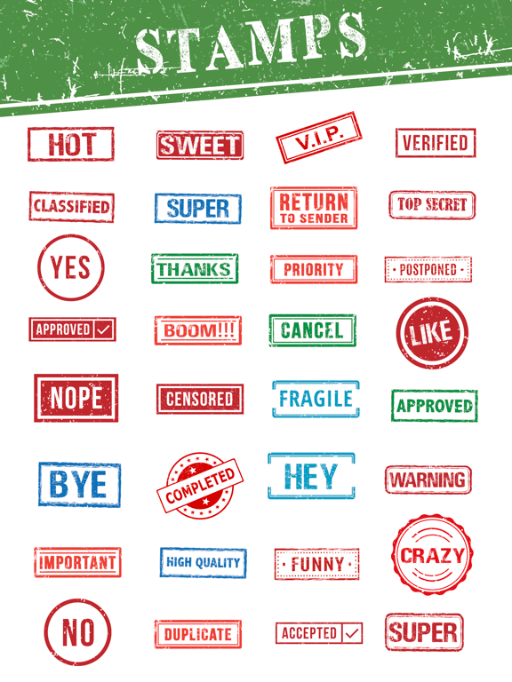 There is a wide variety of Stamp Stickers you can choose from this app. Peel and stick them over other conversation bubbles, images, photos, even on other stickers.