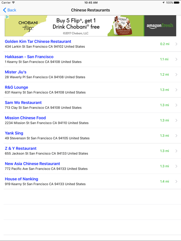 This cool app quickly identifies your location and lets you choose the nearest Asian restaurant of your choice. You can scroll alphabetically through the different kinds of restaurants or quickly jump to a letter with an A-Z side panel.