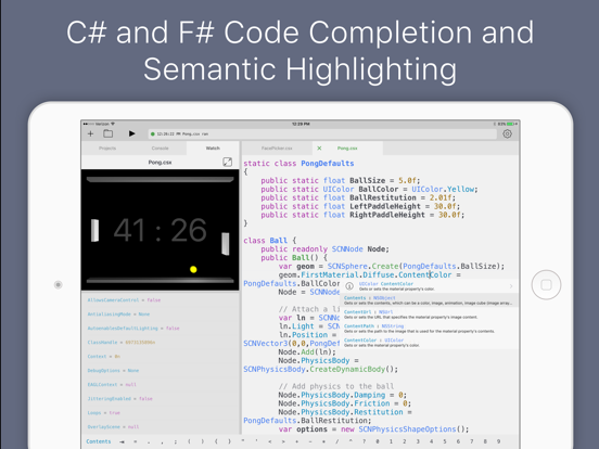 If you're new to .NET or iOS coding, you will love the code completion with integrated documentation and the fun examples that come with the app.