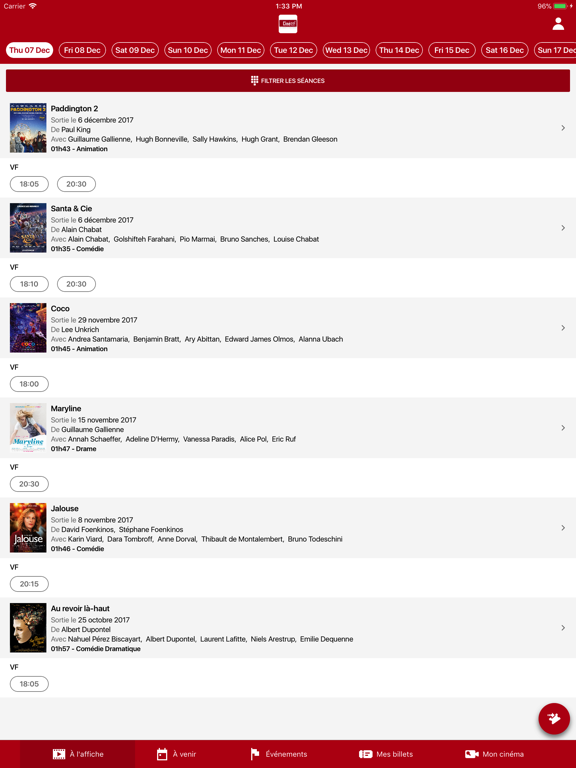 Découvrez tous les films à l’affiche, l’ensemble de vos séances, les films à venir mais aussi les événements de votre cinéma