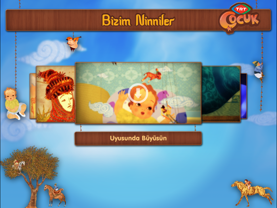Mobil cihazlar için geliştirilen TRT Çocuk Bizim Ninniler uygulaması sayesinde binlerce yıldır kulağımızdan ve benliğimizden silinememiş sesleri, çok özel animasyonlar eşliğinde yeniden hatırlatıyoruz...