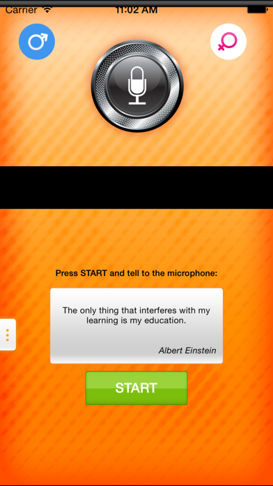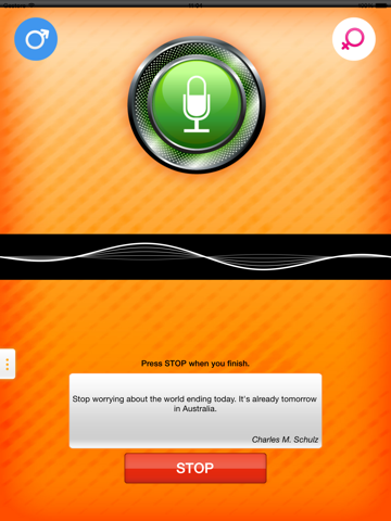 Il suffit de pousser phrase drôle de commencer, lisez affiché, appuyez sur STOP et le détecteur d'humeur commencent analyser votre voix. Utilisez Scanner humeur à vous-même, vos amis et les sentiments de la famille tester.