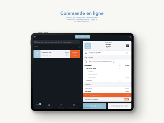 Pour ne jamais manquer une commande : une alerte visuelle et sonore vous prévient dès la réception d’une nouvelle commande.
