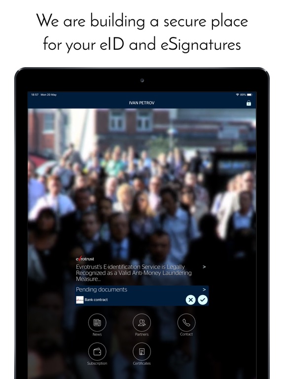 Evrotrust is a unique mobile app to make your work with e-documents as technically and legally secured, as it is in the paper world. It allows you to remotely identify yourself before banks, telecoms, the state, or just to password-less login to websites. Use it to remotely sign any kind of e-documents with qualified e-signature, having same legal effect as handwritten. Once signed, documents could be sent for qualified secure delivery to others as it was done by the well-known courier services.