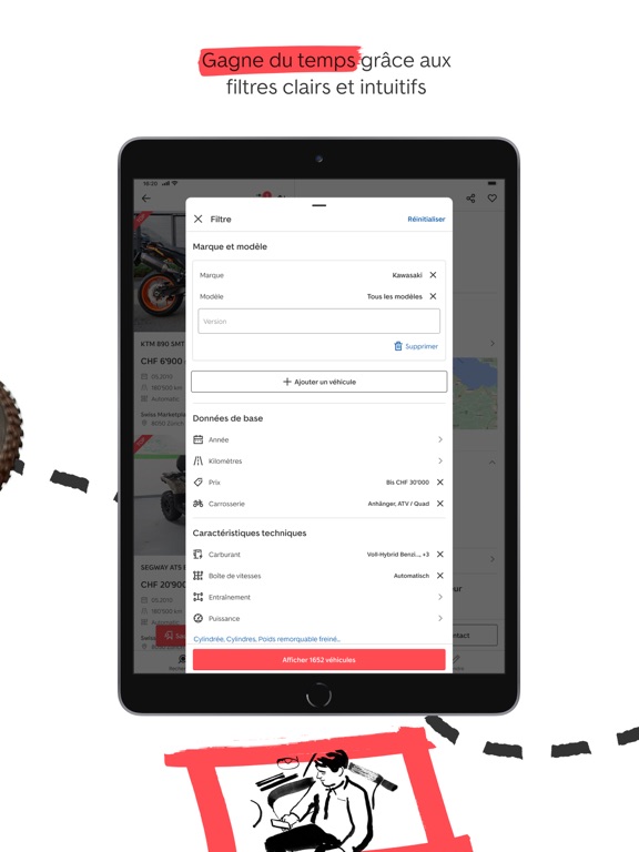 Affinez les résultats avec les critères les plus souvent choisis, par exemple l’année de construction, le prix ou la puissance du moteur.