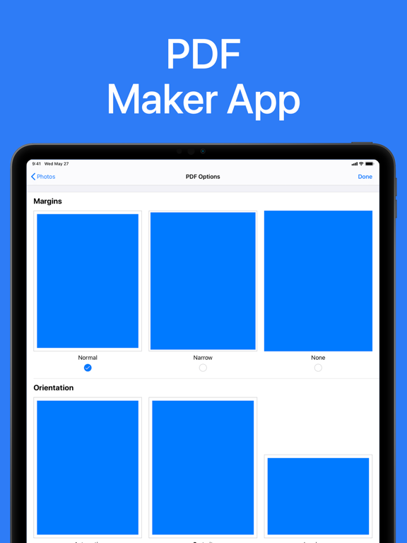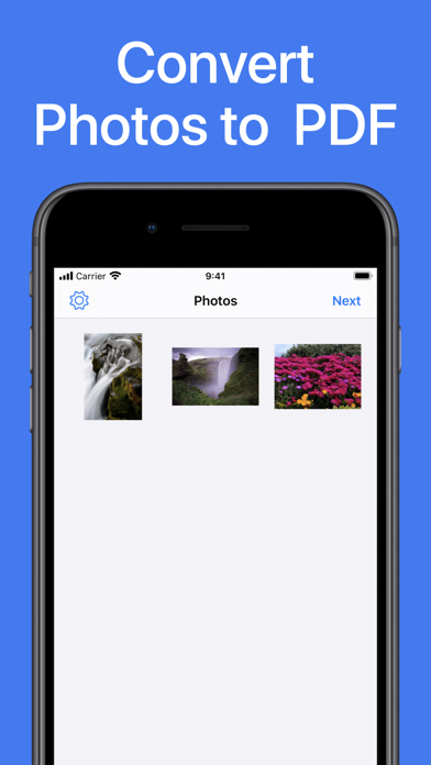 This small PDF app makes it really easy for you to convert pictures to PDF files from your iPhone or iPad. Just open the app, select the images or take a picture with your camera and save it.