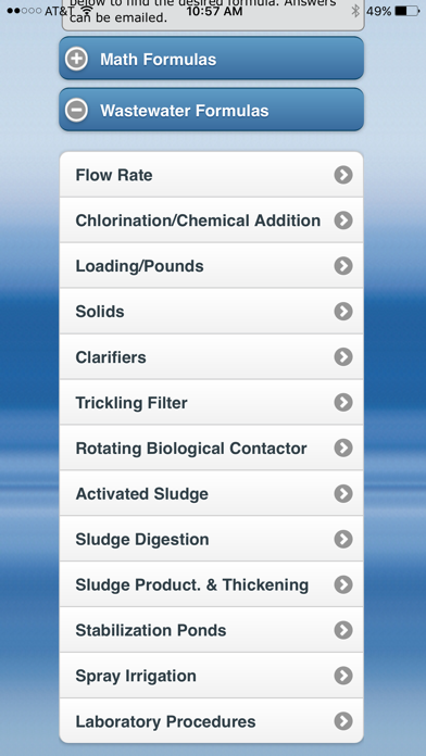 This app is designed for wastewater operators and engineers who need easy to use formulas for daily lab work or troubleshooting problems. There are over 75 formulas for calculating wastewater processes. The formulas are organized by process type. This app only uses English measurements. Answers can be emailed. You can view an online demo at h3apps.com.