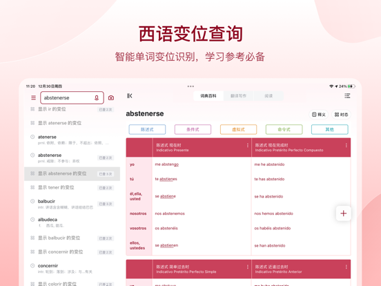 『动词变位』,提供18种时态的动词变位反查功能,助力掌握复杂变位规则;