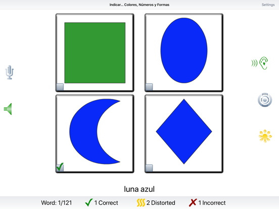 SLPs will like the voice response scoring options. A clear speech model is presented for the child to imitate and they can record and play back their own speech. The clinician can choose from three scoring methods. 1. Score each response as correct, distorted or incorrect. 2. Score responses as correct, distorted, substituted, or omitted. 3. Score productions based on whether they are spontaneously correct/incorrect or imitatively correct/incorrect. Great for early language development or children with speech-language disorders with target language age between 2-8 years.