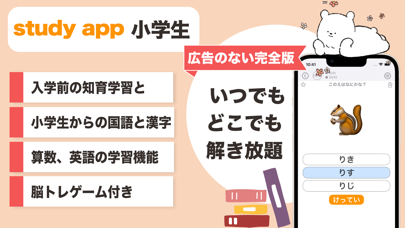 小学校入学前から小学校で学ぶ漢字と算数と英語のアプリ。平仮名や漢字、熟語を掲載。読みだけでなく、なぞりがきにも対応。足し算、引き算の前段階から時計の読み方まで、それぞれの段階に合わせて使用できます。ちょっとしたゲームとして、文字間違い探しも入れています。また、おまけとして、繰り返し学べる、計算やインド式計算、フラッシュ暗算、みとり算なども入れていますので、算数が好きな方や、そろばんなどをしている方にもご活用いただけます。