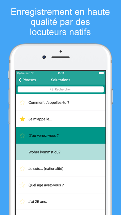 Le guide de conversation allemand est une app de langue allemande gratuite qui vous apprend le allemande simplement et rapidement