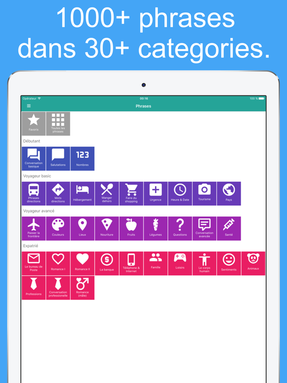 22 Catégories dans la version Pro. Apprenez tous les 1000+ phrases et mots vietnamienne dans la version Pro avec les catégories supplémentaires suivantes :