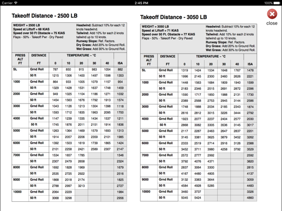 Calculates Ground Roll and Landing Distance based on wind, elevation, altimeter setting etc.