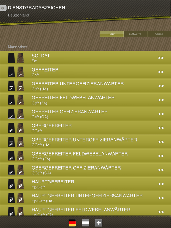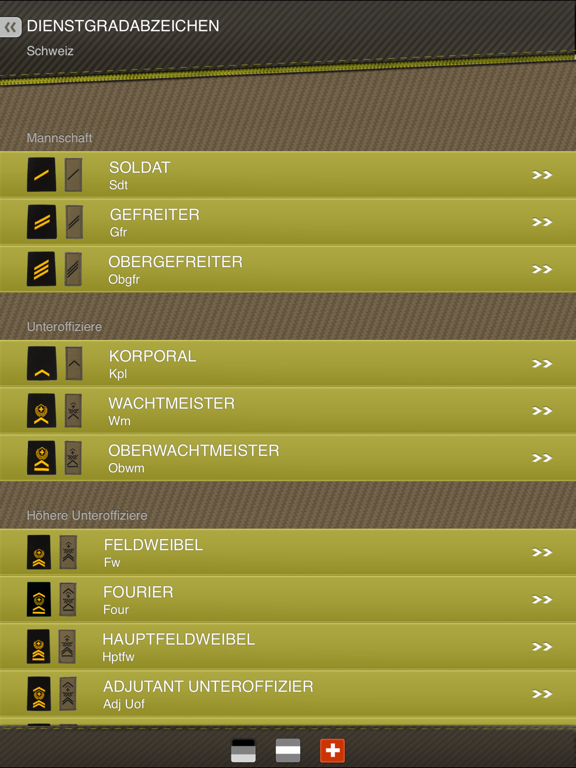 Entdecke und lerne die Dienstgradabzeichen Deutschlands, Österreichs und der Schweiz! Sammle ausserdem Dienstgrade im integrierten Sammelbuch!