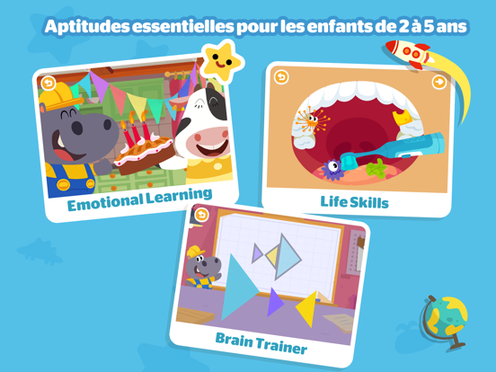 Entraîne ton cerveau avec Dr. Panda dans plus de 100 activités amusantes. Familiarise-toi avec les chiffres et commence à compter de 1 jusqu'à 10. Prends ton pinceau et remplie tes journées de couleurs ou montre tes talents en traçage de lettre et apprends tout en jouant dans le monde passionnant de Dr. Panda et Toto.