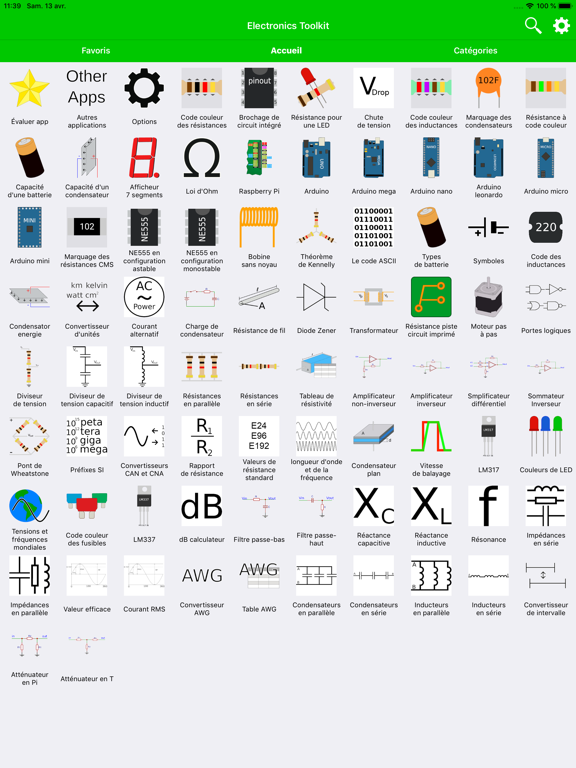 Electronics Toolkit est une application pratique avec des dizaines de calculatrices et de tableaux.