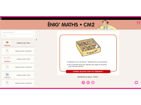L’application permet de projeter les situations-problèmes et travailler en collectif, d’ajouter des notes, masquer ou mettre en valeur des éléments via l’outil éditeur. Une trace écrite à compléter par l’élève après la séance de manipulation, ainsi que les corrigés, y sont également disponibles.