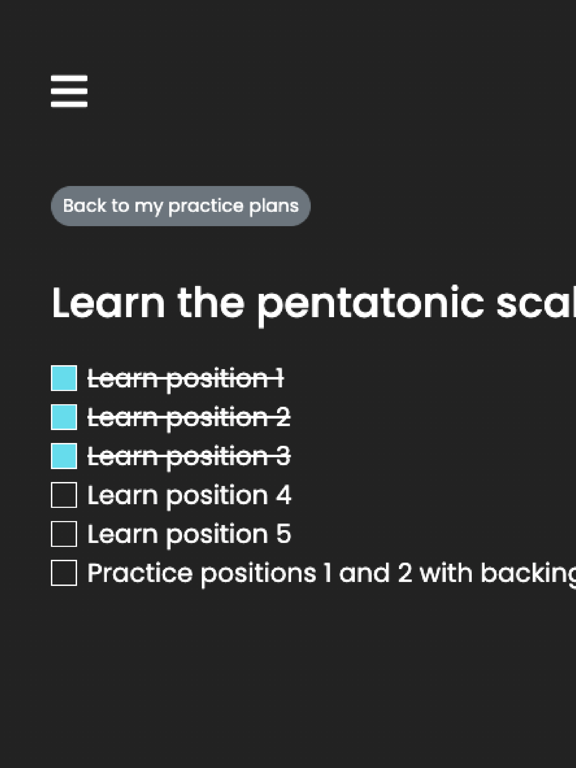 Practice Progress Tracking: Keep tabs on your progress and improvement over time. Our app allows you to mark practice items as completed, helping you monitor your achievements and stay motivated on your guitar journey.