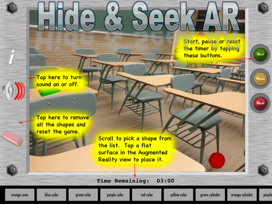 Hide and Seek AR is an engaging two-player game that transforms any classroom or living room into an exciting augmented reality adventure. Players alternate between hiding and seeking virtual shapes seamlessly integrated into their real-world environment.