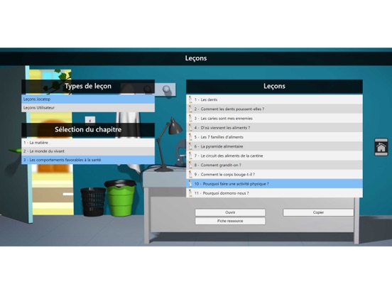 1. Les dents – 2. Comment les dents poussent-elles ? – 3. Les caries sont mes ennemies – 4. D’où viennent les aliments ? – 5. Les 7 familles d’aliments – 6. La pyramide alimentaire – 07. Le circuit des aliments de la cantine – 8. Comment grandit-on ? – 9. Comment le corps bouge-t-il ? – 10. Pourquoi faire une activité physique ? – 11. Pourquoi dormons-nous ?